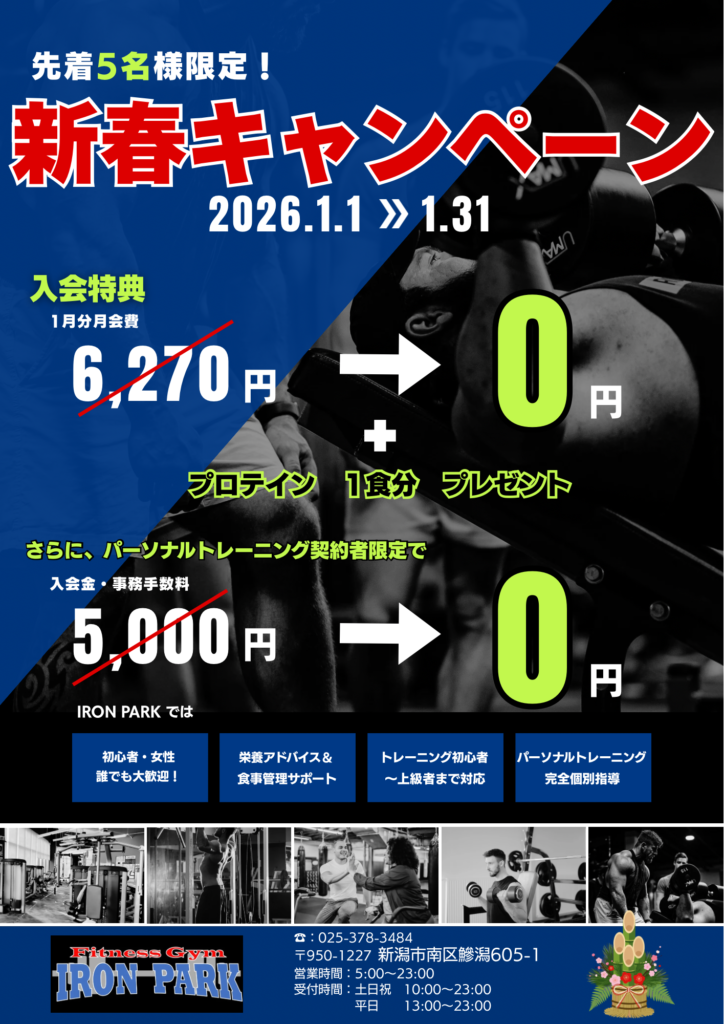 また、1月中にパーソナルトレーニングを契約のお客様に限り入会金・事務手数料が無料になります!